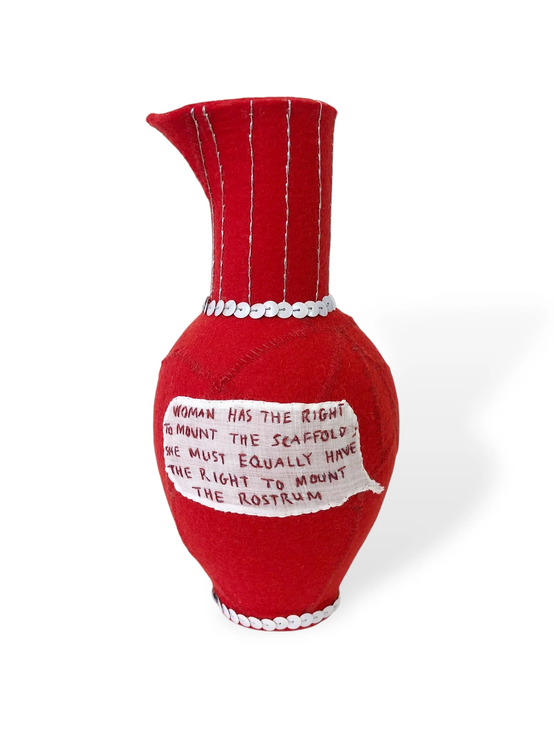 Olympe Vessel references the life of French feminist Olympe de Gouges, who lost her head during the French Revolution for speaking out against a patriarchal world. De Gouges was a playwright and political activist whose views and demands made her an enemy of the system she sought to make more equal. Even though the goalposts have shifted from brutal decapitation to more insidious forms of silencing, challenging the status quo remains difficult and risky for marginalised people in an increasingly inequitable world.
